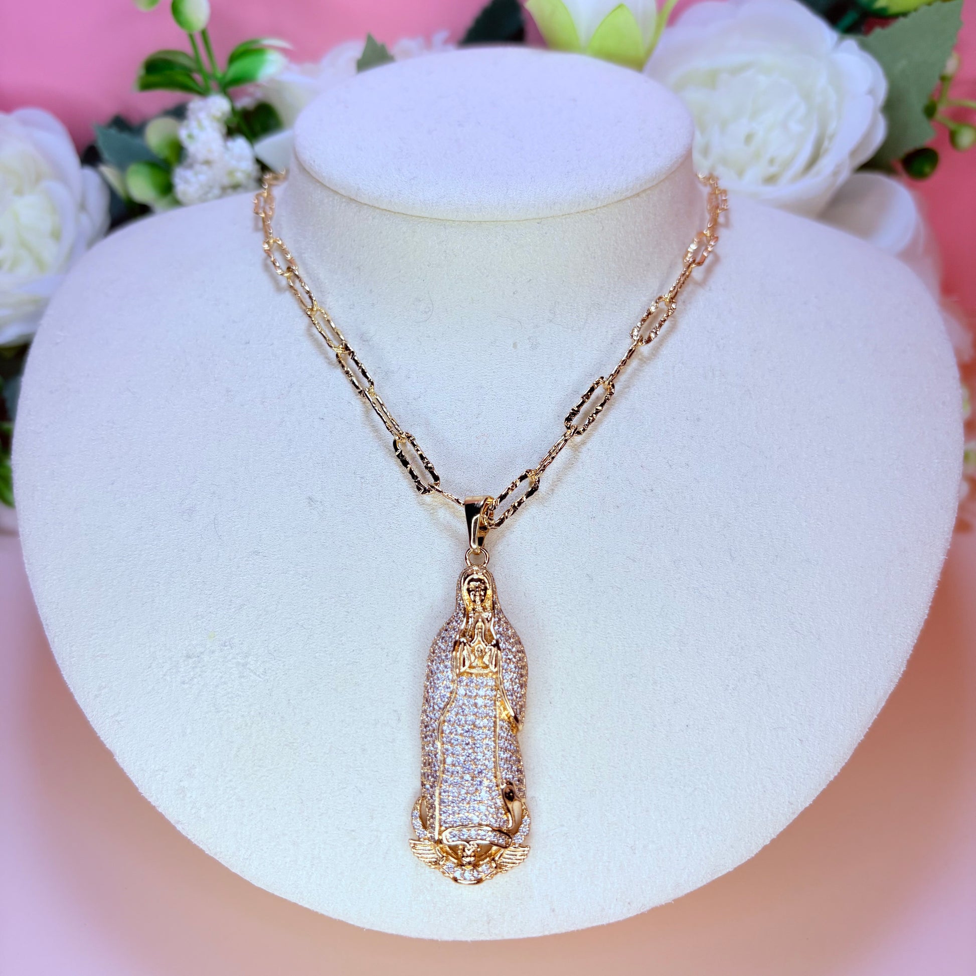 praying hands virgen mary necklace