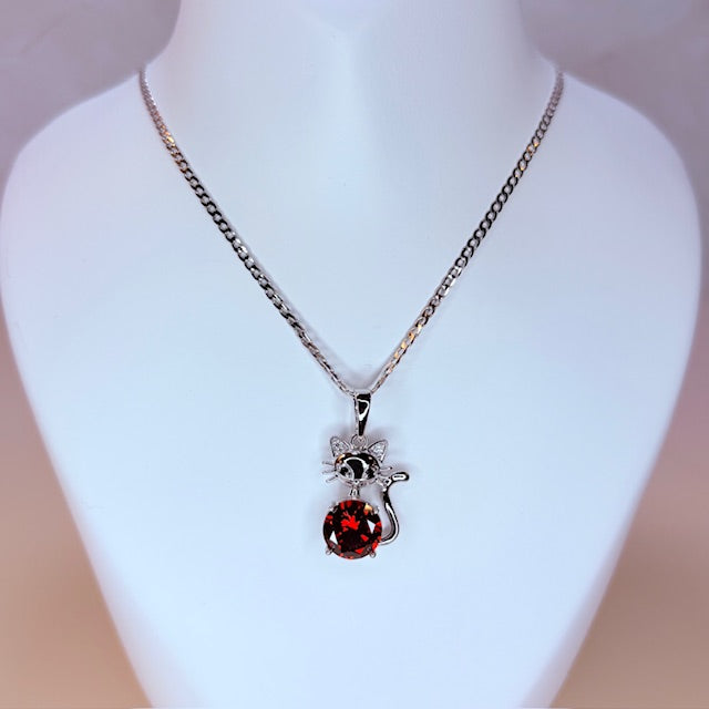 silver kitty necklace