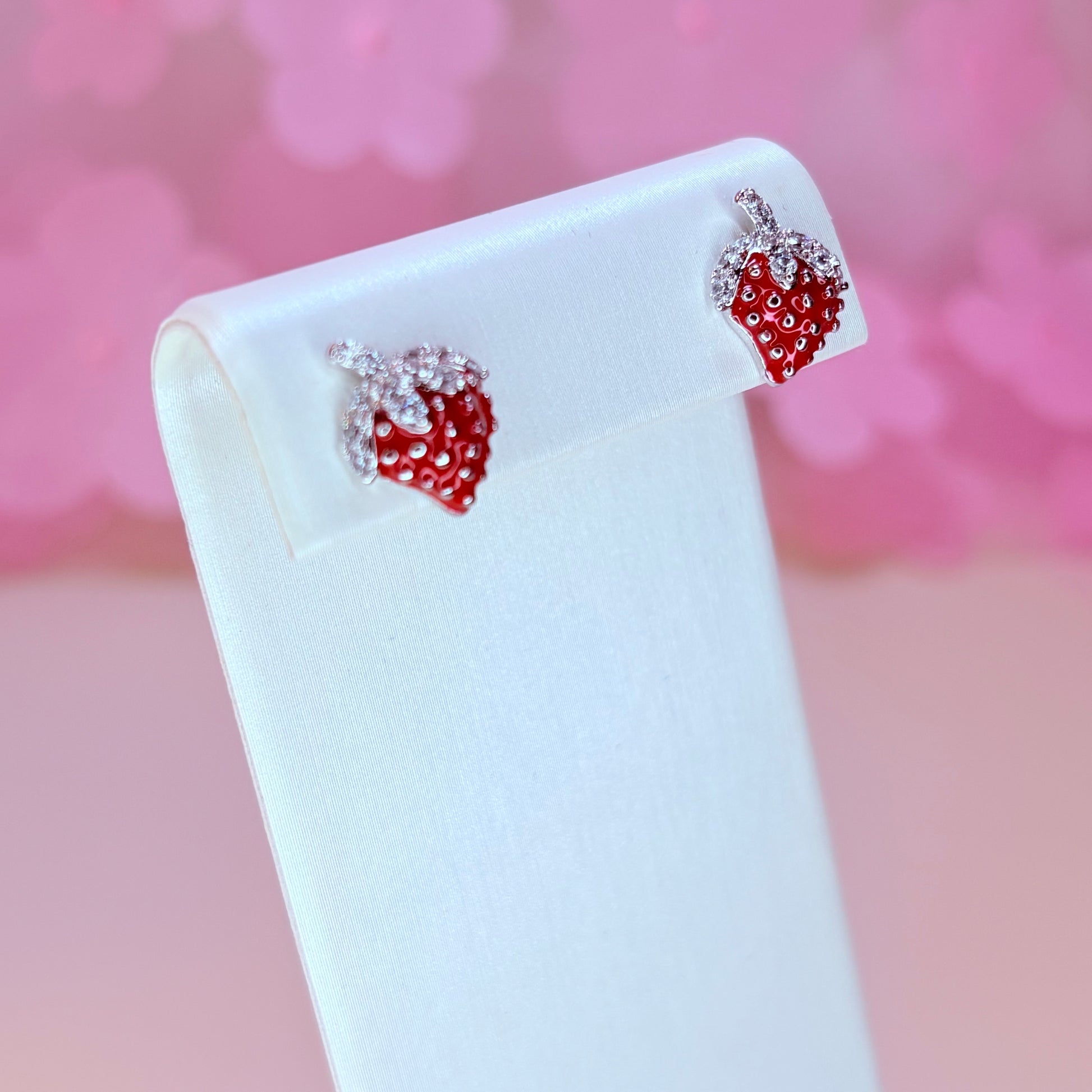 silver strawberry earrings